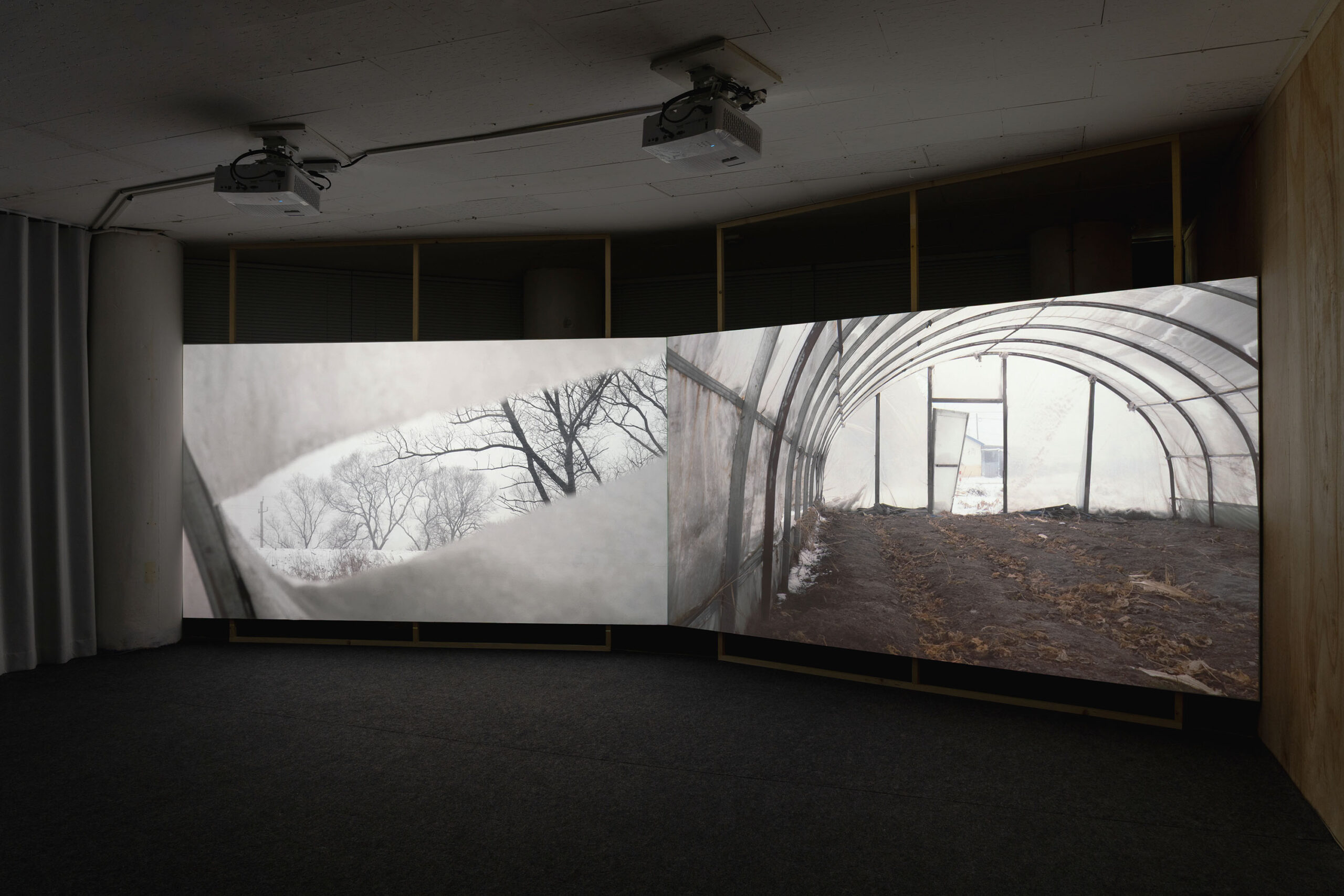 “Hostile Landscapes” is a two-channel film revolving around the remarkable true story of Ju Hyeongeon (朱贤健/주현건/Zhu Xianjian), a North Korean defector who was imprisoned in Jilin Prison, Northeast China, since 2013, for illegal border-crossing, theft, and robbery. In October 2021, Ju escaped the prison with bare hands and managed to elude local police and authorities for 40 days before he was ultimately captured near the Fengman Dam, a historically significant location with deep Japanese colonial ties.